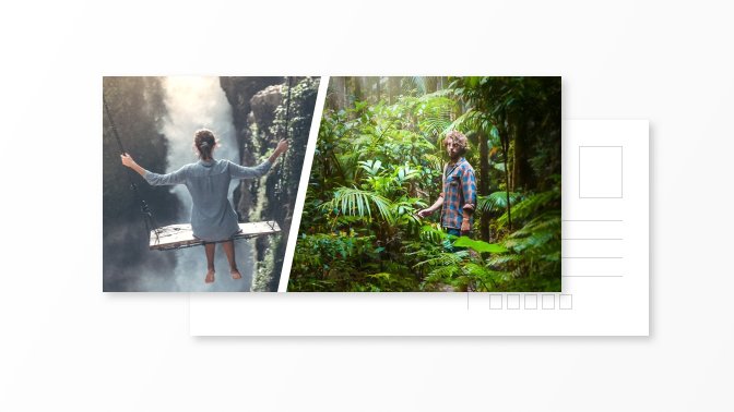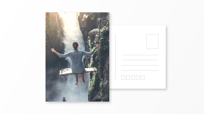 Pohľadnica s jednou fotografiou a vlastným textom na zadnej strane.